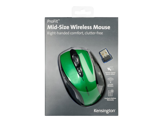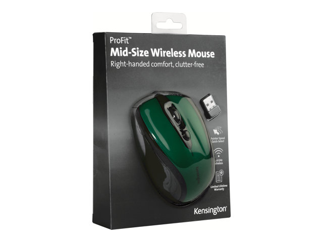 Kensington Pro Fit Mid-Size - Hiiri - oikeakätinen - optinen - langaton - 2.4 GHz - USB johdoton vastaanotin - smaragdinvihreä