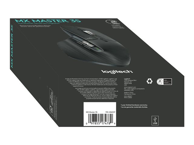 Logitech Master Series MX Master 3S - Hiiri - ergonominen - optinen - 7 painiketta - langaton - 2.4 GHz, Bluetooth - Logitech Logi Bolt USB-vastaanotin - grafiitti