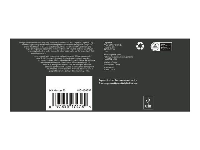 | Ominaisuudet | Peukalopyörä, eletoiminto, ladattava akku, Quiet Clicks -tekniikka, MagSpeed-vieritys, muokattava DPI, Logitech Darkfield Laser Tracking, Easy-Switch -tekniikka, peukalotuki |