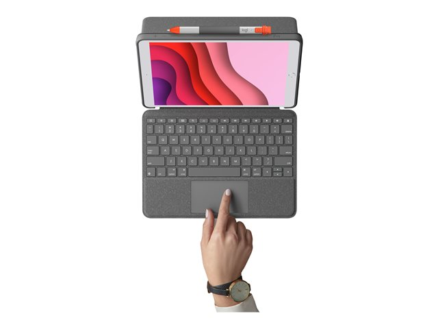 Logitech Combo Touch - Näppäimistö- ja kalvokotelo - sekä kosketuslevy - taustavalaistu - Apple Smart connector - AZERTY - ranskalainen - grafiitti malleihin Apple 10.2-inch iPad (7. sukupolvi, 8. sukupolvi, 9. sukupolvi)