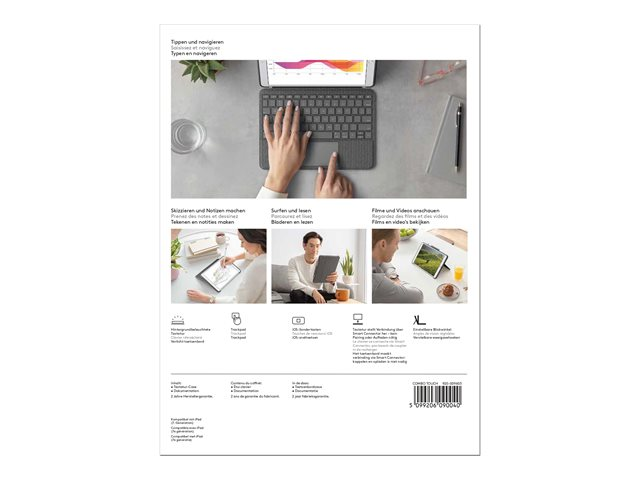 Logitech Combo Touch - Näppäimistö- ja kalvokotelo - sekä kosketuslevy - taustavalaistu - Apple Smart connector - QWERTY - espanjalainen - grafiitti malleihin Apple 10.2-inch iPad (7. sukupolvi, 8. sukupolvi, 9. sukupolvi) 920-009627