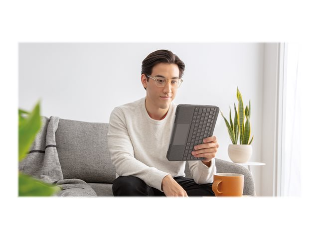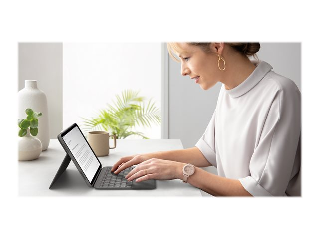 Logitech Folio Touch - Näppäimistö- ja kalvokotelo - sekä kosketuslevy - taustavalaisu - Apple Smart connector - QWERTY - Iso-Britannia - oxfordinharmaa malleihin Apple 10.9-inch iPad Air (4. sukupolvi, 5th generation) 920-009968