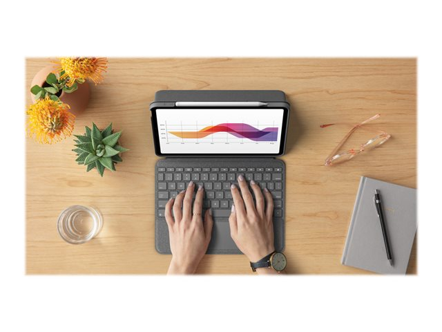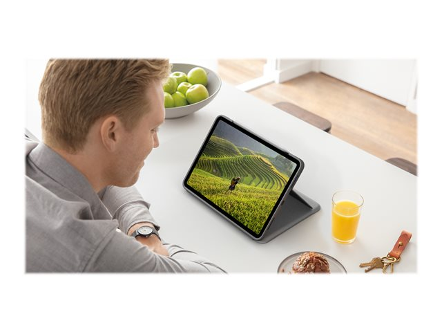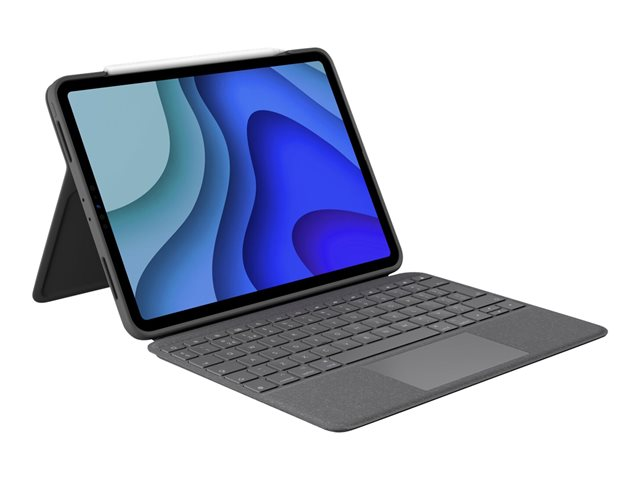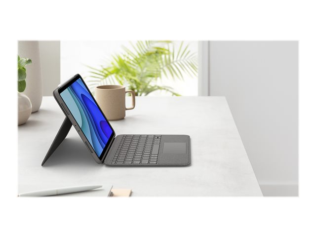 Logitech Folio Touch - Näppäimistö- ja kalvokotelo - sekä kosketuslevy - taustavalaisu - Apple Smart connector - QWERTY - Iso-Britannia - oxfordinharmaa malleihin Apple 10.9-inch iPad Air (4. sukupolvi, 5th generation)