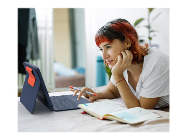 Logitech Rugged Combo 3 Touch for Education - Näppäimistö- ja kalvokotelo - sekä kosketuslevy - Apple Smart connector - QWERTY - pohjoismainen - klassisen sininen - akateeminen malleihin Apple 10.2-inch iPad (7. sukupolvi, 8. sukupolvi, 9. sukupolvi)