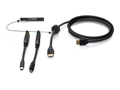 C2G 10ft (3m) 4K HDMI Premium Cable and Dongle Adapter Ring with Color Coded Mini DisplayPort and USB-C - Videosovitinpakkaus - musta - tuki 4K / 60 Hz, 4K 30 Hz:n tuki (mDP), kullatut liittimet