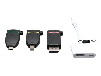 | Sisältyvä määrä x Tyyppi | Näyttösovitin - Mini DisplayPort (uros) to 19-nastainen HDMI A-tyyppi (naaras) Näyttösovitin - 20 nastan näyttöporttiliitin (uros) to 19-nastainen HDMI A-tyyppi (naaras) Näyttösovitin - 24-nastainen USB-C (uros) to 19-nastainen HDMI A-tyyppi (naaras) Näyttösovitin - Lightning (uros) to 19-nastainen HDMI-A / 24-nastainen USB-C (naaras) |