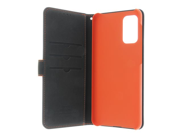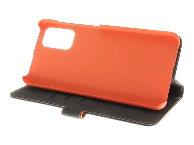 Insmat - Läppäkansi matkapuhelimelle - nahka, kartonki + paperi + alumiinifolio - musta, oranssi malleihin Samsung Galaxy A32 5G 650-2970
