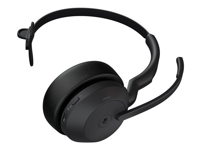 Jabra Evolve2 55 MS Mono - Kuulokkeet + mikrofoni - korvien päällä - Bluetooth - langaton - aktiivinen melunpoisto - USB-C - musta - sertifioitu Microsoft Teamsille