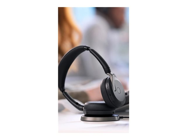 Jabra Evolve2 65 Flex UC Stereo - Kuulokkeet + mikrofoni - korvien päällä - Bluetooth - langaton - aktiivinen melunpoisto - USB-A - musta - sekä langaton latausalusta - optimoitu UC:lle 26699-989-989