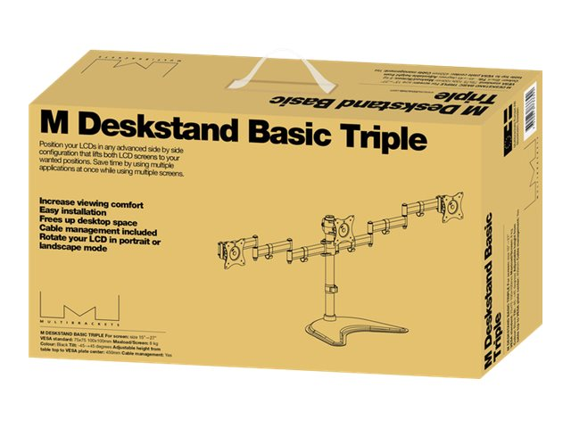 Multibrackets M Deskstand Basic Triple - Asennuspakkaus (pöytäasennus) malleihin 3 LCD-näyttöä - teräs, korkealaatuinen alumiini - musta -näytön koko: 15"-27" - työpöytä jalusta