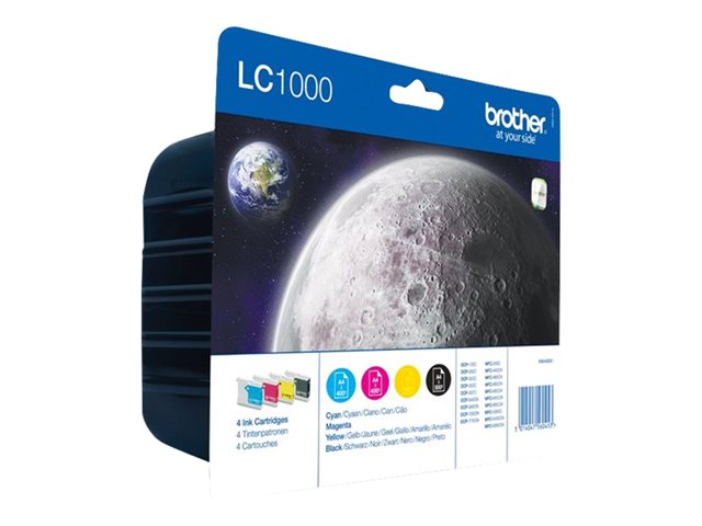 Brother LC1000 Value Pack - 4 pakettia - musta, keltainen, sinivihreä, magenta - alkuperäinen - kuplapakkaus - mustepatruuna malleihin Brother DCP-130, 330, 350, 353, 540, 560, 750, 770, MFC-5460, 5860 LC1000VALBP