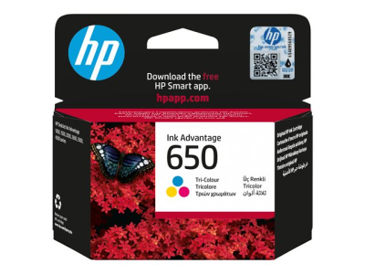 HP 650 - Väri (sinivihreä, sinipunainen, keltainen) - alkuperäinen - mustepatruuna malleihin Deskjet Ink Advantage 2515, Ink Advantage 3515