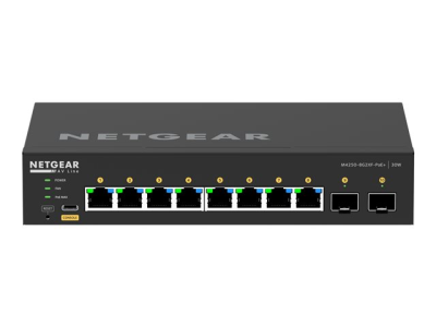 NETGEAR AV Line M4250-8G2XF-PoE+ - Kytkin - L3 - Hallinnoitu - 8 x 10/100/1000 (8 PoE+) + 2 x 10 Gigabit SFP+ - sivusta sivuun ilmavirtaus - telineeseen asennettava - PoE+ (220 W)